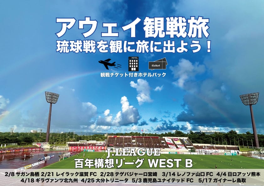 沖縄までのエアー、ホテル、レンタカー、FC琉球観戦チケット付きのプラン等が